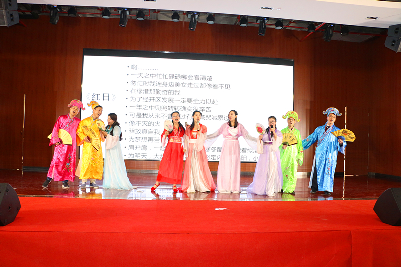 隨后,來自集團(tuán)工程管理部林重胤以及嘉通公司潘青青甜蜜獻(xiàn)唱《告白氣球》,讓大家感受到了愛情的絲絲美好。嘉通公司的《夸夸咱公司》,用三句半的表演形式唱出了綠港集團(tuán)濃濃的企業(yè)文化情愫,也展現(xiàn)了綠港員工積極、拼搏、向上的精神?!段乙鼐G港》、《聲臨其境》、《好運(yùn)來》、《愛》、《好嗨喲》等多個(gè)節(jié)目在觀眾的熱情掌聲中聯(lián)袂奉上一場精彩演出,整個(gè)活動(dòng)歌聲笑聲、熱烈的掌聲匯成了歡樂的海洋。集團(tuán)營銷管理中心的《四小天王齊賀歲》以及集團(tuán)計(jì)劃運(yùn)營部、紀(jì)檢監(jiān)察審計(jì)部、安全監(jiān)督部聯(lián)合帶來的《蒙面唱將猜猜猜》將活動(dòng)推向高潮,現(xiàn)場掌聲不斷??彀濉毒G港贊歌》道出了綠港集團(tuán)成立五載,綠港人用智慧和汗水所取得的成效。最后,集團(tuán)領(lǐng)導(dǎo)班子壓軸出場,帶來詩歌朗誦《相信未來》,贏得陣陣掌聲,讓大家堅(jiān)定了信心、鼓足了干勁,對(duì)美好生活更加熱愛和向往。