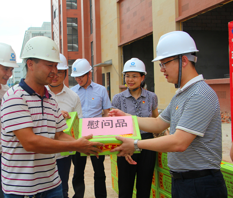 集團(tuán)黨委書記、董事長(zhǎng)、總經(jīng)理龔國(guó)強(qiáng)為項(xiàng)目一線人員送上清涼慰問(wèn)品