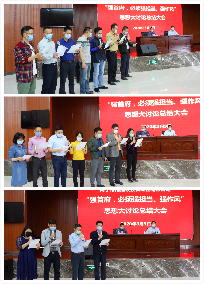 最后,集團黨委書記、董事長龔國強對本次思想大討論活動開展情況進行了總結(jié)點評,并要求各部門、各子公司認真踐行諾言,落實落細措施,確保取得良好成效。龔書記表示,當前疫情形勢依然嚴峻復雜,全國各地都在做好疫情防控的前提下,出臺了一系列政策措施,搶開局、穩(wěn)經(jīng)濟、促發(fā)展。綠港集團在疫情防控的關鍵時刻召開這次總結(jié)會,就是要進一步營造一心一意謀發(fā)展的濃厚氛圍,形成全力以赴落實強首府戰(zhàn)略的強烈共識,傳遞出疫情防控和經(jīng)濟發(fā)展兩手抓、兩手都要硬的鮮明導向和強烈信號,為實現(xiàn)集團公司高質(zhì)量發(fā)展的“加速度”,全力以赴完成好新的一年集團公司的各項發(fā)展任務目標。作為經(jīng)開區(qū)最大的平臺公司,2020年年初以來,綠港集團緊緊圍繞“強首府,必須強擔當、強作風”的總體要求,著重在“學精神、查不足、求改變、強擔當”上下功夫,針對如何解決六個方面突出問題、如何克服十種突出現(xiàn)象以及如何在八種情形下運用容錯糾錯機制,結(jié)合工作實際,群策群力開展了三次專題思想大討論活動,通過查深、查透、立行立改,有力轉(zhuǎn)變了作風,進一步提高了干部職工的緊迫感、使命感,為全面落實強首府戰(zhàn)略,奮力譜寫集團公司高質(zhì)量發(fā)展新篇章凝聚了共識,集聚了動力。