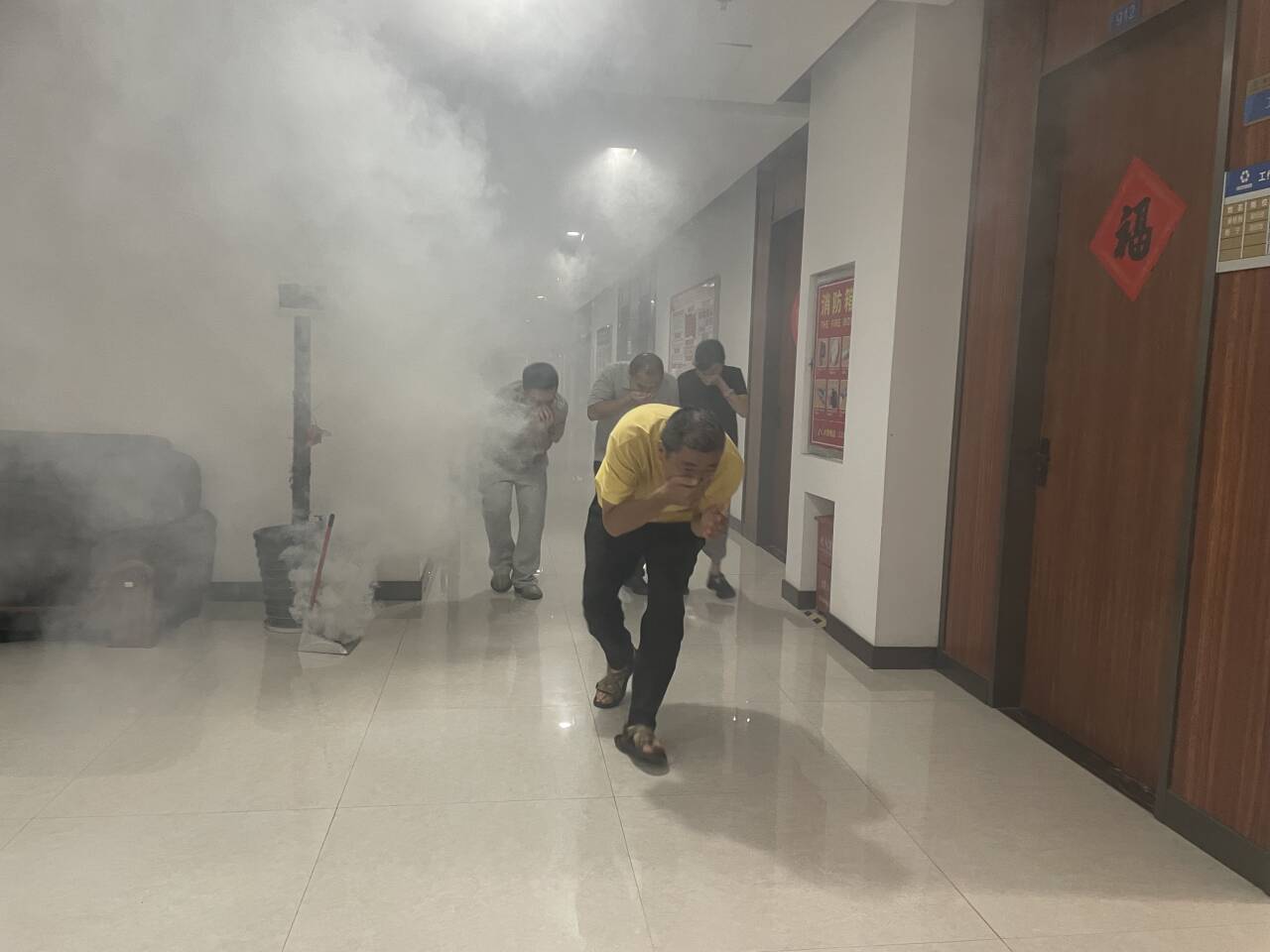 隨后,全體人員轉(zhuǎn)移至模擬火災(zāi)事故現(xiàn)場,進行現(xiàn)場實操演練。先后體驗了建筑物煙霧逃生、滅火器使用等綜合演練項目。全體員工的安全意識和應(yīng)急處置能力得到了進一步提升。